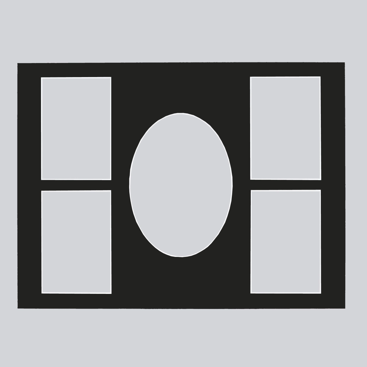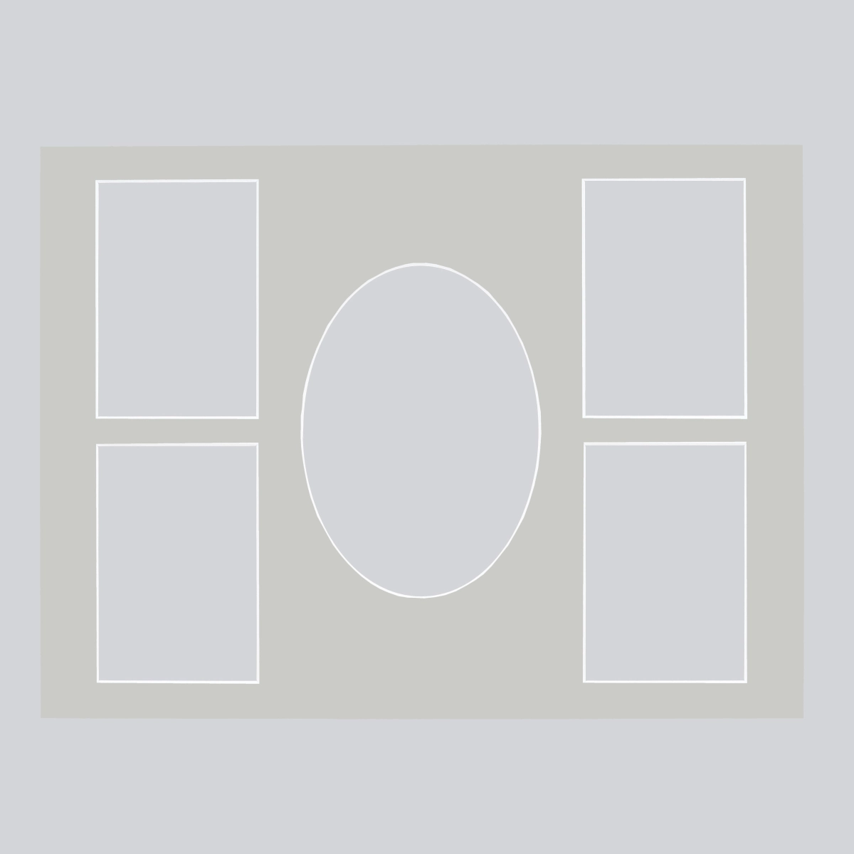 Die Passepartoutcollage Vivienne hat ein Außenmaß von 30x40 cm und einen Ausschnitt für ein Bild im Format 13x18 cm sowie vier Ausschnitte, die für Bilder im Format 9x13 cm geeignet sind. Die Collage kann sowohl im Quer- als auch im Hochformat verwendet werden.
